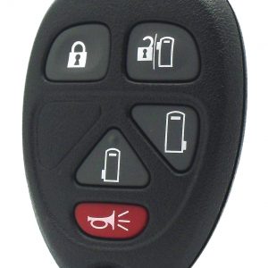 GMC and Chevy 5 Button Keyless Entry Remote with Sliding Door Buttons featuring Lock, Unlock, Open Left Sliding Door, Open Right Sliding Door, and Panic Buttons