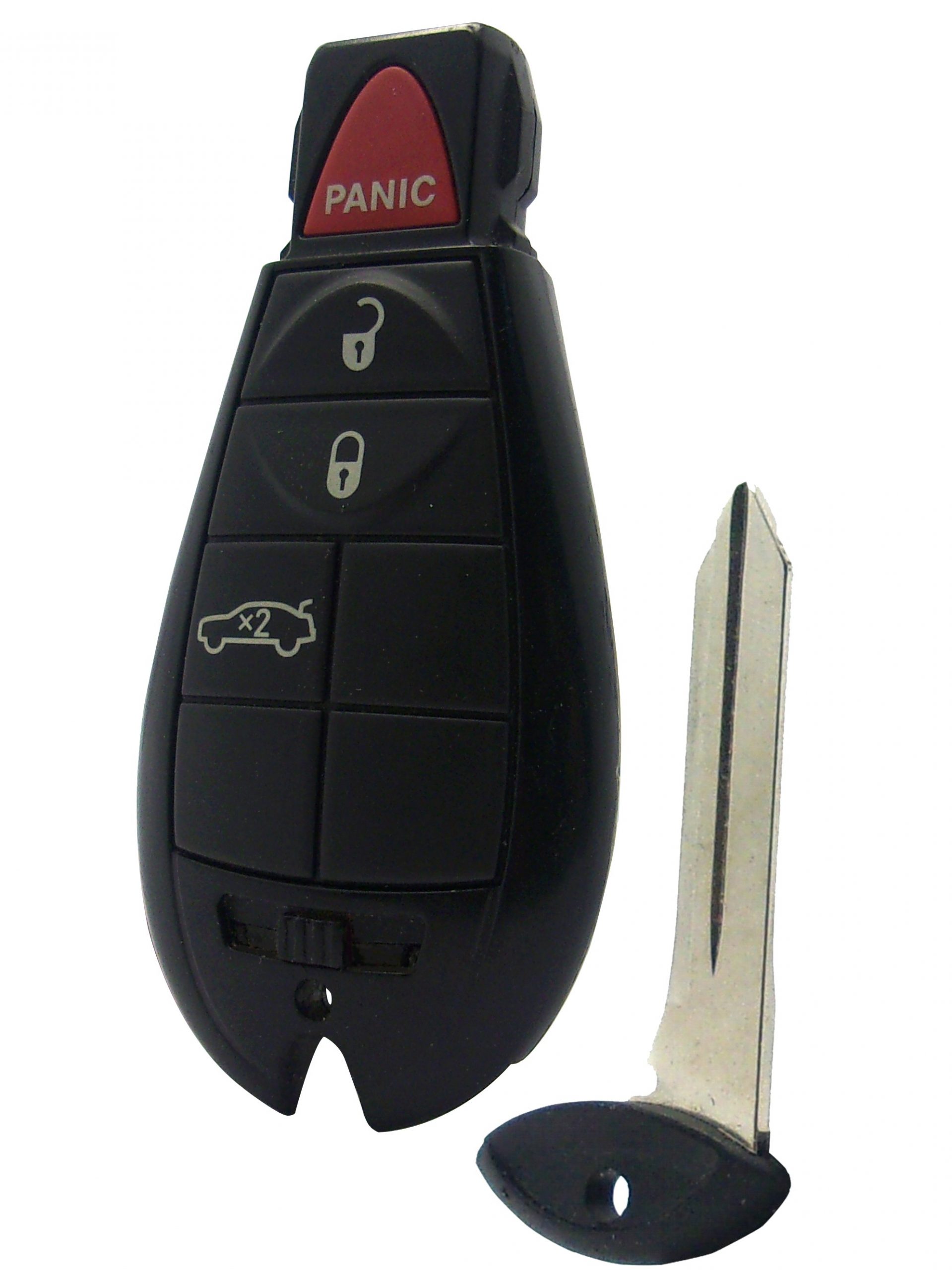 Contains four button functions: LOCK, UNLOCK, TRUNK, and PANIC.