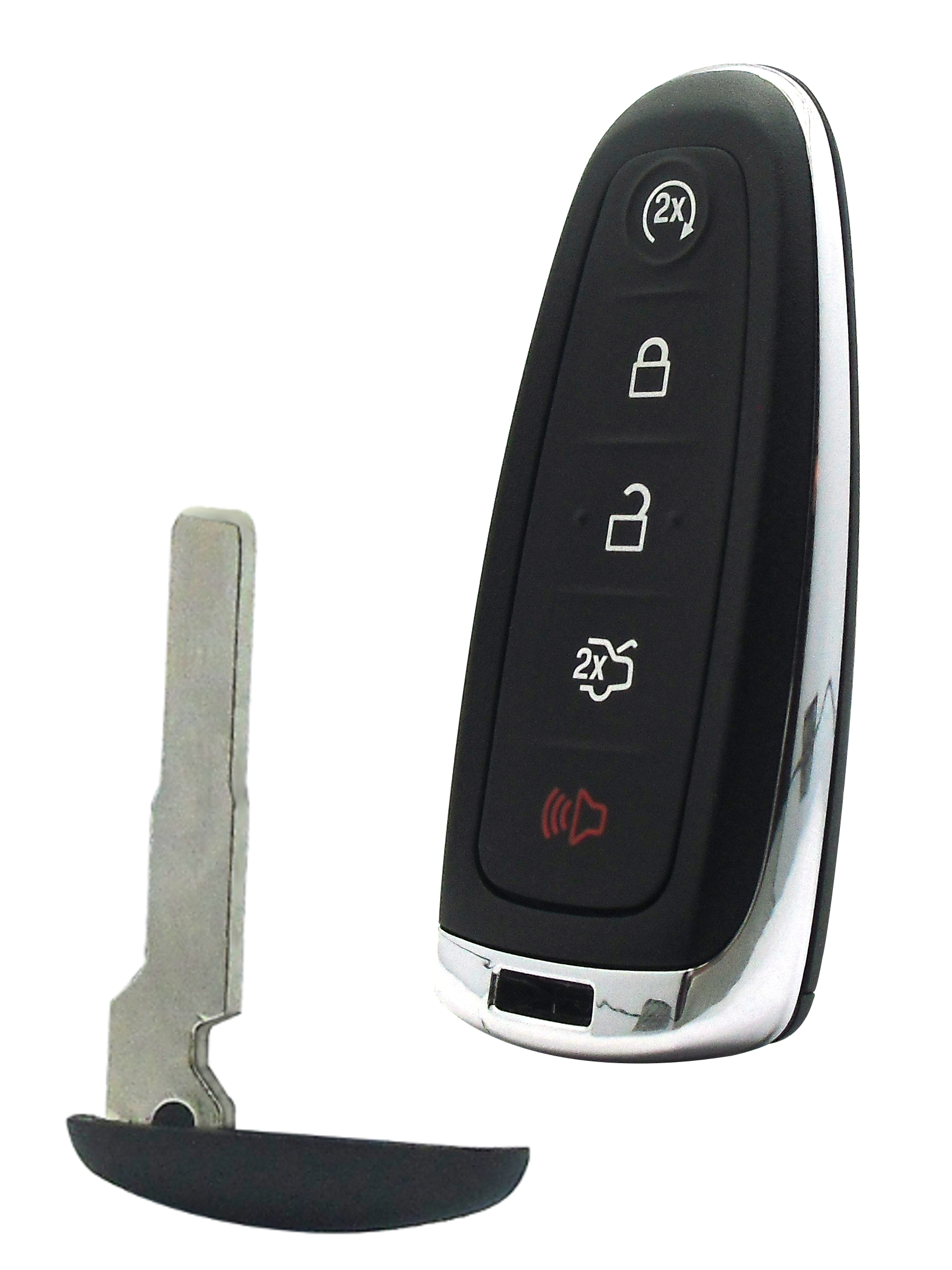 Operates as a keyless entry remote with an uncut emergency key insert included.