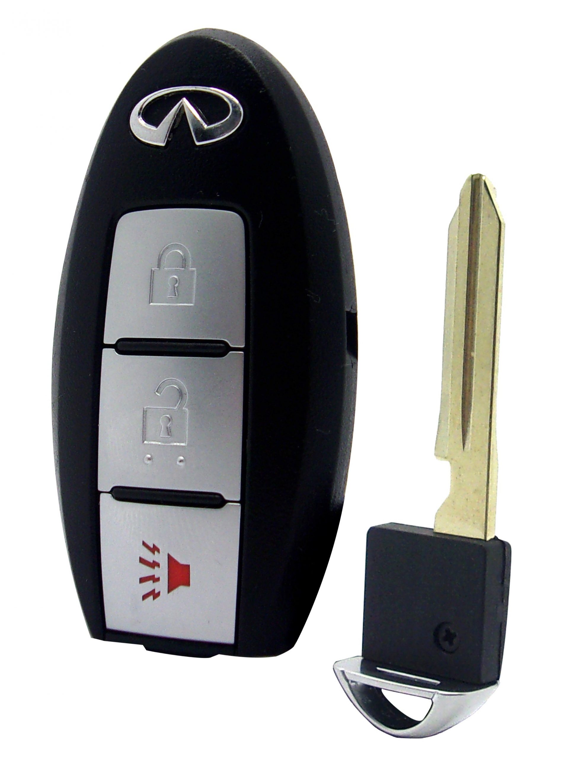 Have you lost your car keys? Would you like to have a spare remote in case of an emergency? We’ve got you covered! This device is a genuine OEM (Original Equipment Manufacturer) that uses a proximity transponder that communicates with your vehicle’s keyless entry system, only allowing access to its functions when the key fob is closely in range. It has 3 functions: LOCK, UNLOCK, and PANIC. The shell is made of a durable material that withstands everyday wear, and houses a hidden key, a backup measure for a discharged battery in the remote. Vehicles that utilize a smart key system, allows the driver to activate the engine without inserting a key into the ignition, while the smart key is inside the vehicle. This device is compatible with a variety of Infiniti vehicles produced between 2008-2017. Purchase with confidence at DrivKey!